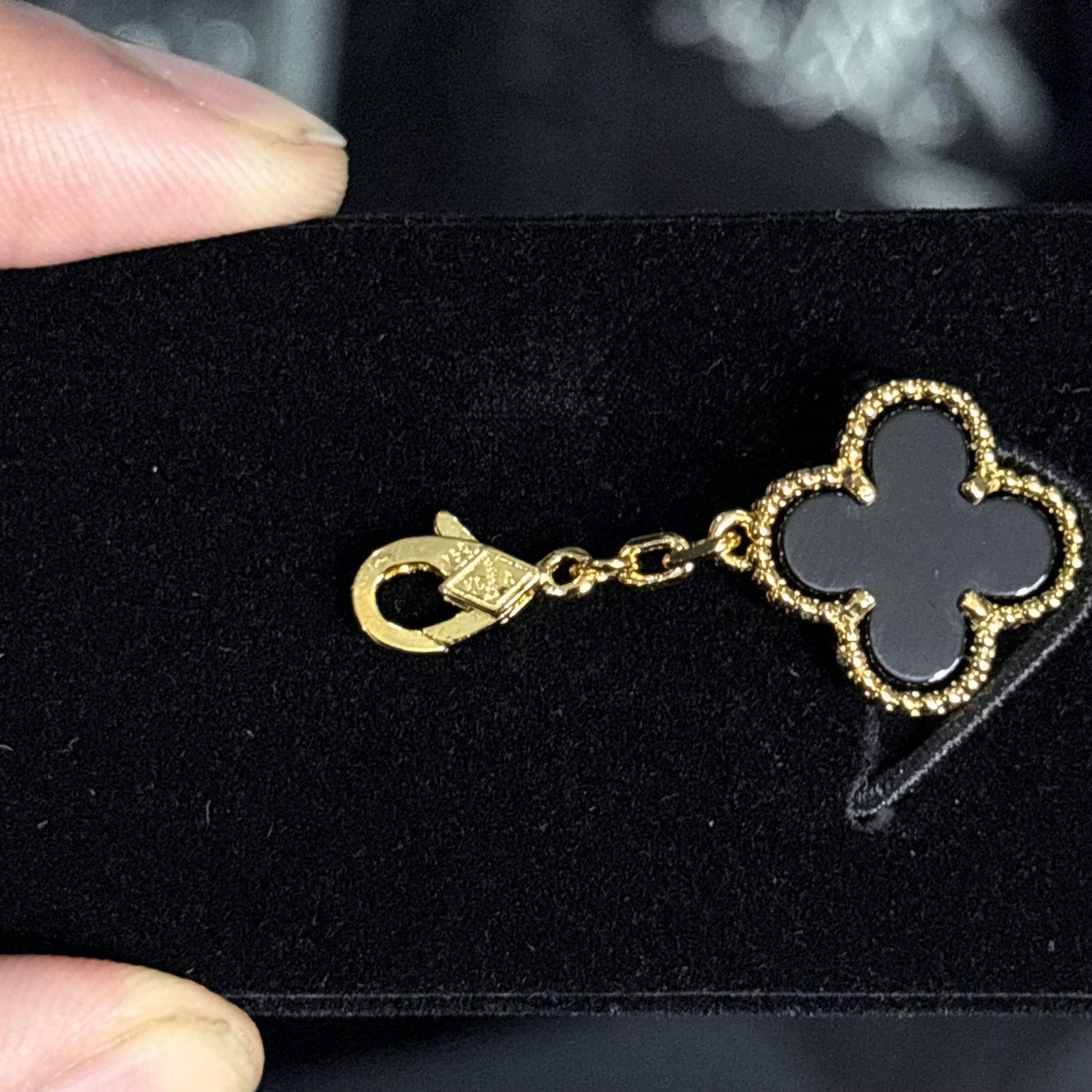 La Van Cleef Onix 14K es ese detalle que transforma por completo tu outfit. Su diseño icónico de tréboles en tono negro profundo con acabado dorado crea un contraste sofisticado, limpio y atemporal. Es una pieza que transmite clase desde cualquier ángulo, perfecta para quienes entienden que los detalles hacen la diferencia.